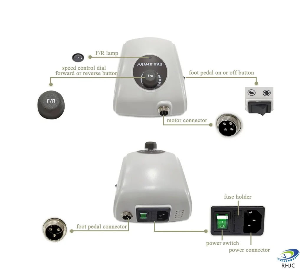 Además este modelo dispone de un torque (Fuerza de torsión)  de 4.8 N.cm, con el que jamás te faltará fuerza en tus pedicuras aunque trabajes a bajas RPM. Tu pododisc será imposible de frenar!